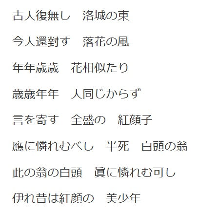 この句は劉希夷(りゅうきい)の詩の一節です。